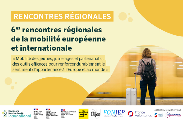 BFC International, en partenariat avec la Direction régionale de l’économie, de l’emploi, du travail et des solidarités (DREETS), la Délégation régionale académiques à la jeunesse, à l’engagement et aux sports (DRAJES), l’agence du Service Civique, le FONJEP, France Volontaires, la Région Bourgogne-Franche-Comté et la Ville de Dijon, organise les 6es rencontres régionales de la mobilité européenne et internationale, autour du thème « Mobilité des jeunes, jumelages et partenariats : des outils efficaces pour renforcer durablement le sentiment d’appartenance à l’Europe et au monde ».