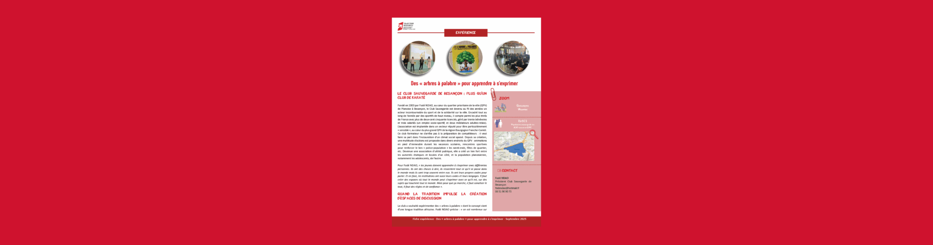 Le club a souhaité expérimenter des « arbres à palabre » dont le concept vient d’une longue tradition africaine. Fodé Ndao précise : « on est nombreux sur Planoise à venir d’Afrique. Dans les villages, quand on était petits, on voyait les anciens palabrer. Ils discutaient de sujets importants. Il y avait des divergences mais c’était respectueux et ça permettait à chacun de respecter les points de vue de tout le monde ».